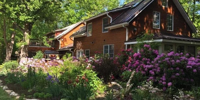 The Main Inn at Goldberry Woods is a 6,500 square-foot modern farmhouse where we can hang out together and eat our catered meals. There are 8 suites include private bathrooms with large whirlpool tubs/showers, gas fireplaces, streaming TVs, Wi-Fi, custom tree bed frames. A beautiful spot to retreat and make some new friends.